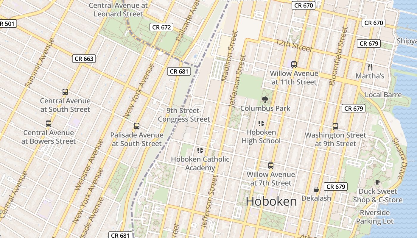 The apartment in Hoboken is 1.7 miles from David Zwirner Gallery and 2.9 miles from Empire State Building. One World Observatory is around 10 minutes' drive from the accommodation.