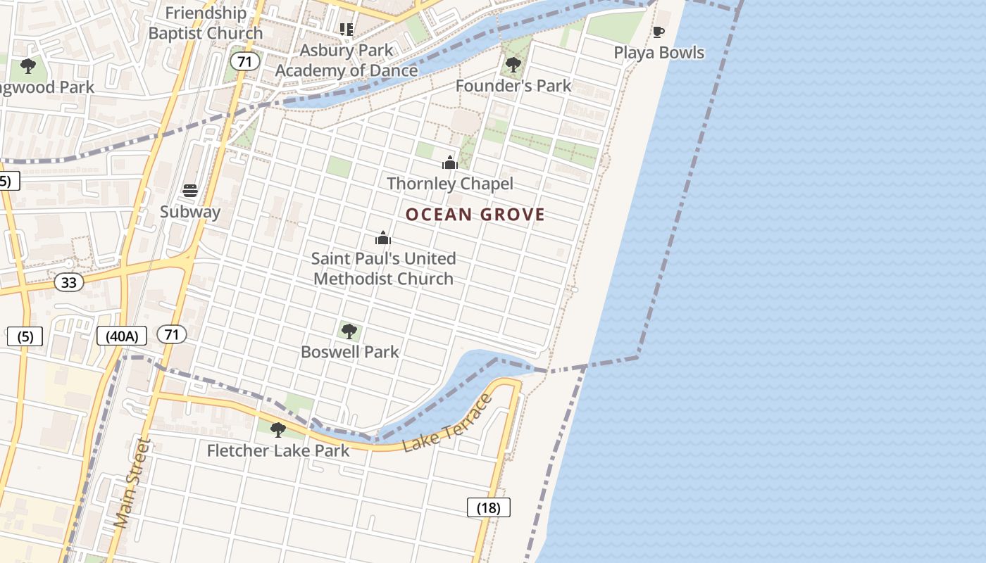 The Ocean Grove hotel places you a mere 0.9 miles from Silverball Pinball Museum and 2.6 miles from 14th Avenue Beach Badge Ticket Booth. The accommodation is also located 6 minutes' walk from Ocean Grove Tent City and about a 10-minute drive from Deal Casino Beach Club. Visit Fletcher Lake, 0.3 miles from this Ocean Grove bed & breakfast, and feel complete harmony with the nature of United States of America. No matter the religion, travelers prefer to visit Thornley Chapel, a popular place of worship located right around the corner from The Inn At Ocean Grove.